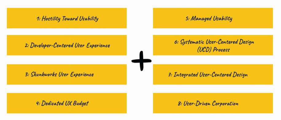 Author derives a version from the famed Nileson Norman corporate maturity model for UX